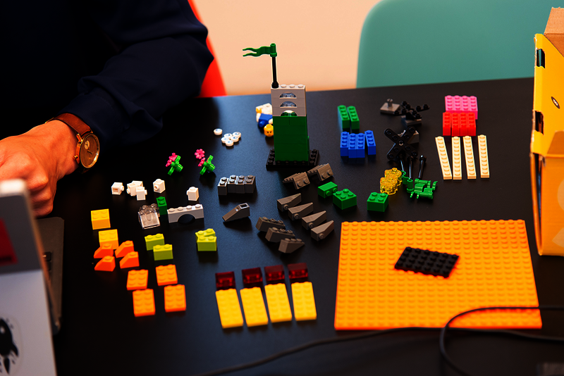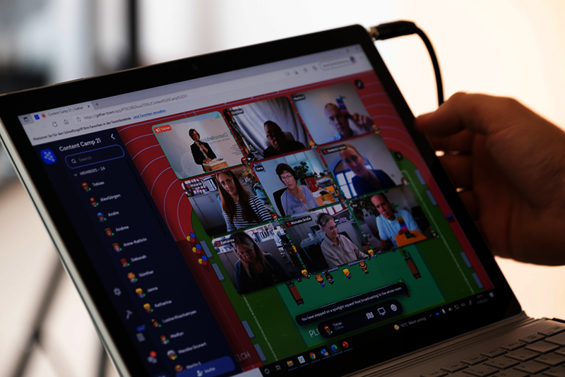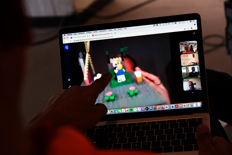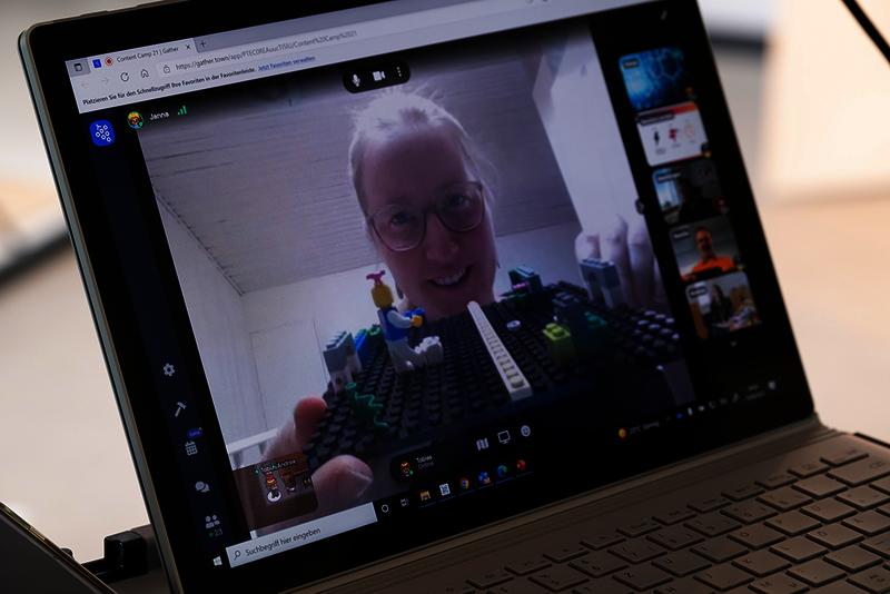 Inhaltlich ging es darum, in Teamarbeit eine spannende Multi-Story mit Perspektivwechsel entwickeln, hilfreiche Konzeptionsmethoden für den Arbeitsalltag kennenlernen und professionell Lego zu spielen. Lego? Ja, mit den Kreativbausteinen von Lego Serious Play können eingefahrene Denkstrukturen aufgebrochen und neue Perspektiven erlebt werden. Die anfängliche Skepsis war schnell verflogen, als die Trainerin Antonia Jennewein zum professionellen Einsatz von Lego hinführte. Auf der anderen Seite des Monitors hatten die Teilnehmenden ihre Gedanken schnell und kreativ mit Lego visualisiert.