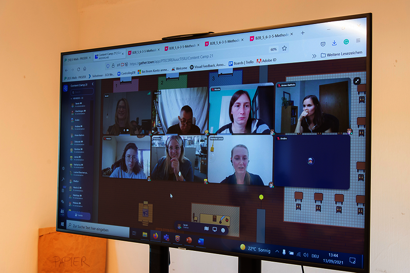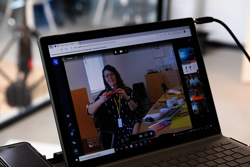 Mitte September 2021 war dies das Thema im Content Camp. Die Herausforderung: Erstmalig fand das Camp digital statt. Und das sollte gut werden. Daher war der Austragungsort des Camps Gather.Town. Ein digitaler Ort mit Räumen, Plätzen, Whiteboards und Avataren. Leicht verspielt, doch deutlich näher an dem gewohnten Erleben von Präsenzveranstaltungen. Da gab es keine Breakout-Rooms oder eine endlos dauernde Meeting-Sitzung. Kurzweilig und unterhaltsam blieben die Teilnehmenden von 09:30 Uhr bis 15:45 Uhr dabei. Wenige Tage zuvor hatten die Chemieverbände ein Goodie-Bag als Paket versendet, in dem alles drin war, was für das Camp benötigt wurde.